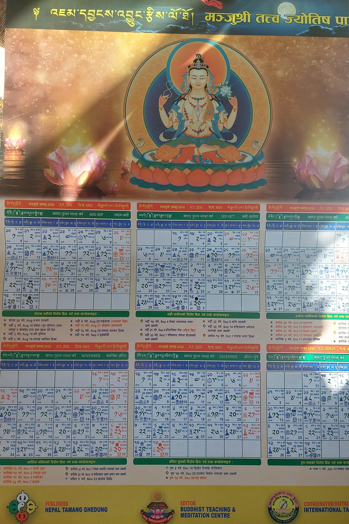 काठमाडौं–नेपाल तामाङ घेदुङले बुदिष्ट टिचिङ एण्ड मेडिटेसन सेन्टरको सम्पादन र अन्तर्राष्ट्रिय तामाङ परिषद्को समन्वयमा मञ्जुश्री सम्वत् २८६० को भित्तेपात्रो (डेङचि) प्रकाशनमा ल्याएको छ ।