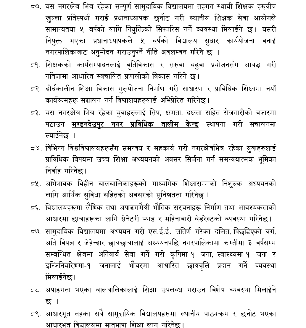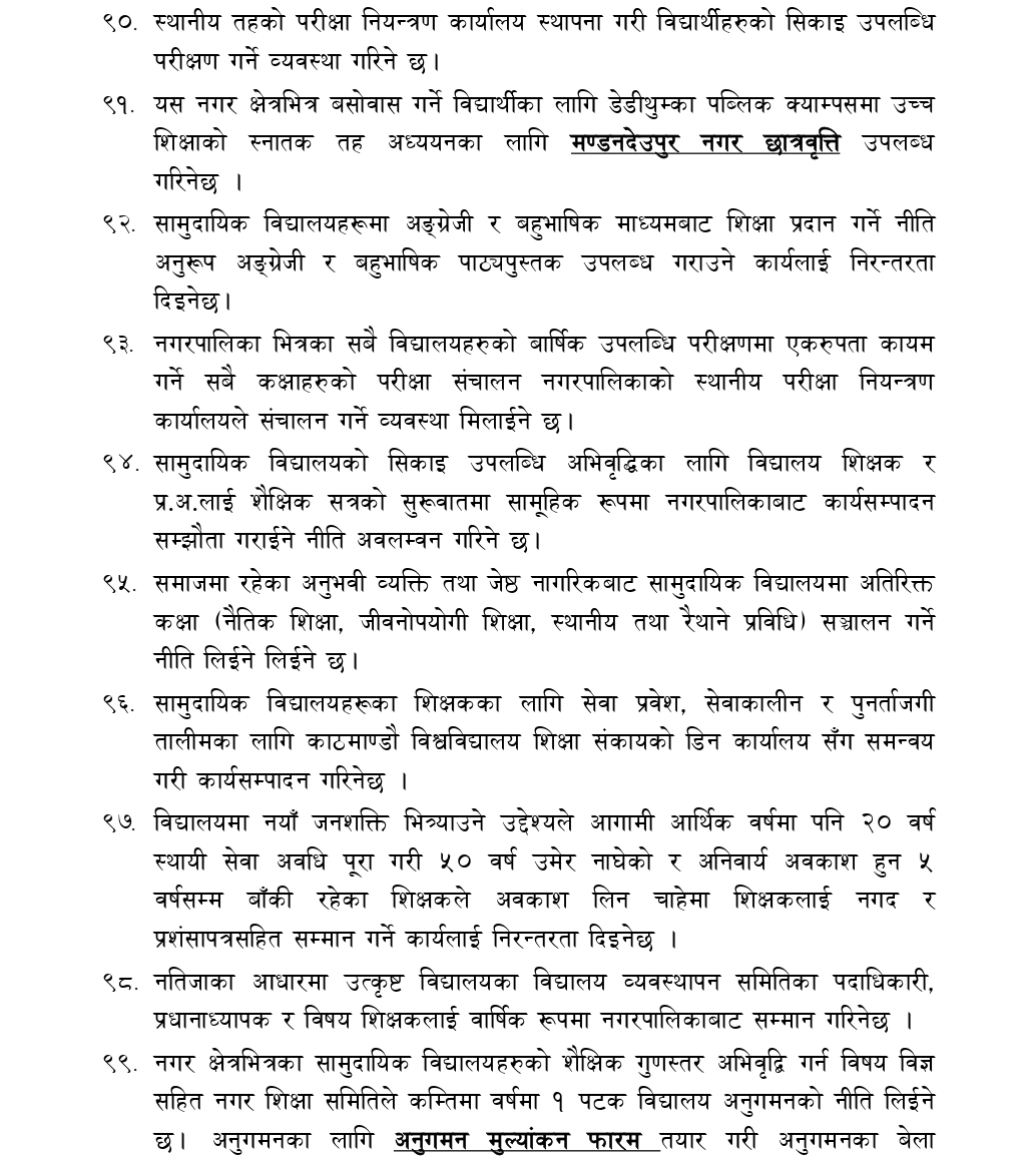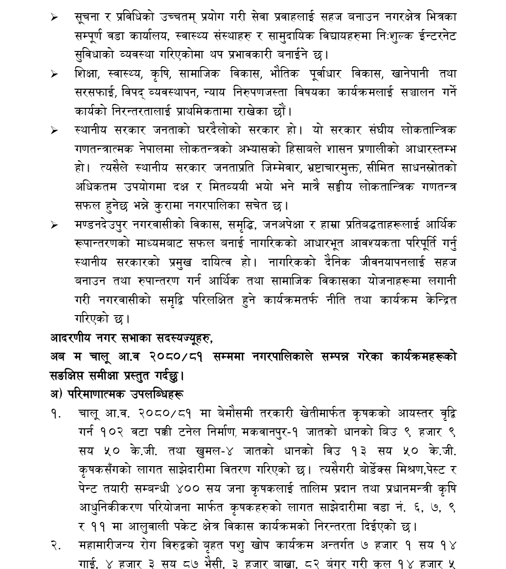 काभ्रेपलाञ्चोकको मण्डनदेउपुर नगरपालिकाको नगरसभाको १५ औं अधिवशेनमा नगर प्रमुख टोक बहादुर वाइबाद्धारा प्रस्तुत आ.व.२०८१/०८२ को नीति तथा कार्यक्रमको पूर्णपाठ :-