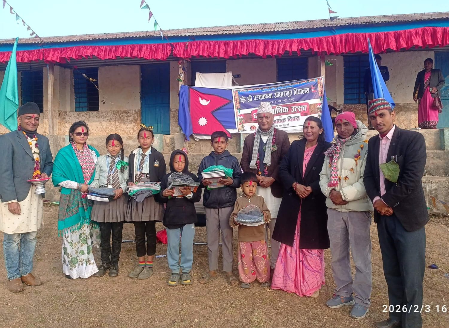त्यसैगरी श्री पञ्चकन्या आधारभूत विद्यालयमा अध्ययनरत पुनम बि.क., सिर्जना श्रेष्ठ, गणेश तामाङ, सबिता रम्तेल र सोधे श्रेष्ठ लाई न्यानो कपडासहित शैक्षिक सामग्री वितरण गरिएको छ।